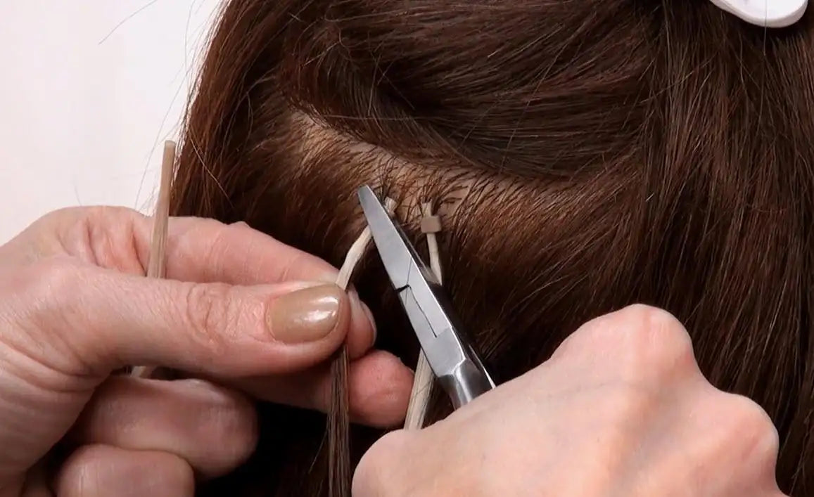 - I-Tip Extensions: These extensions are applied using a microbead. The natural hair is threaded through the bead along with the I tip extension, and then the bead is clamped down to secure the extension in place.
